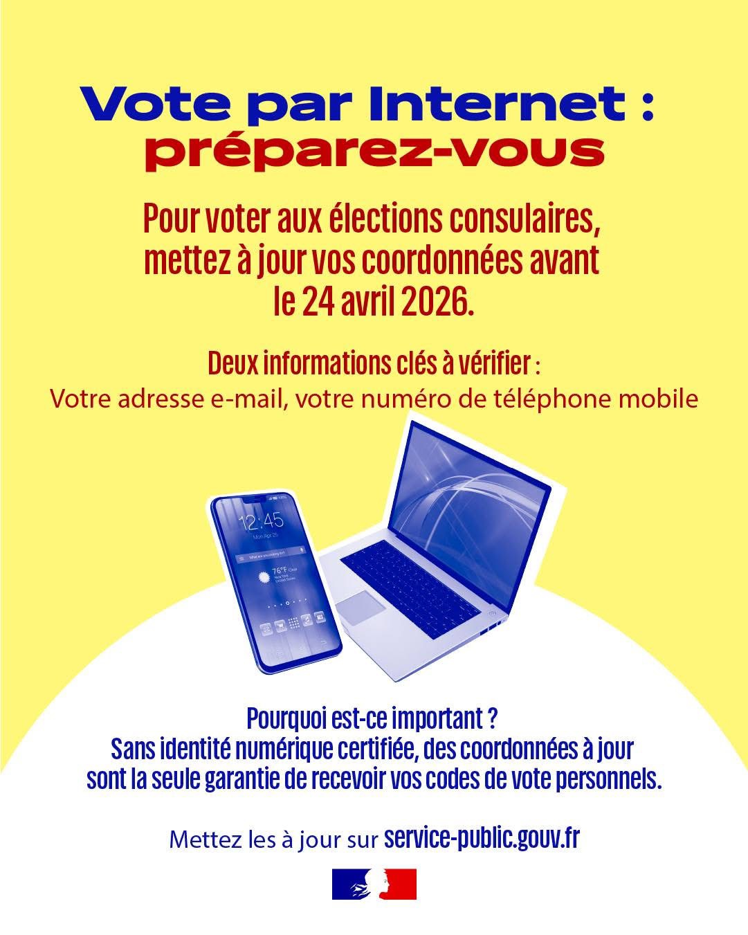 • Actualiser ou s’inscrire au Registre des Français établis hors de France en suivant le lien :